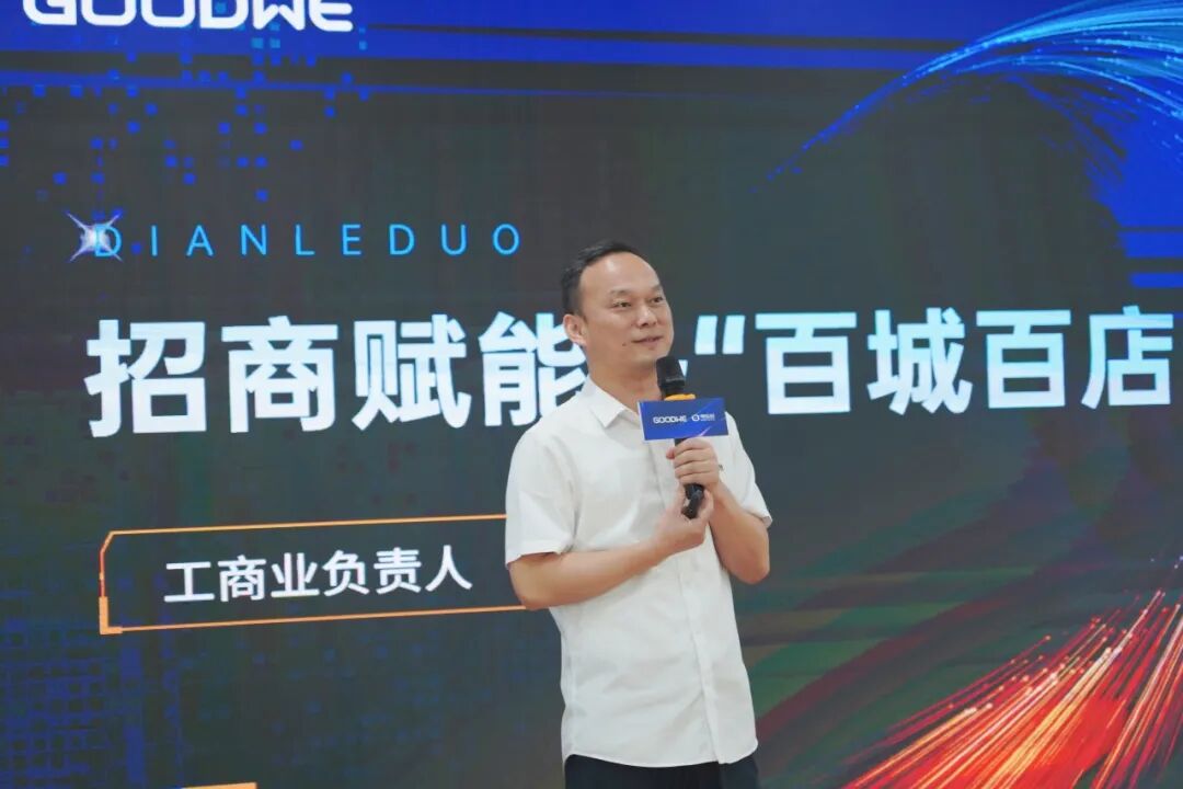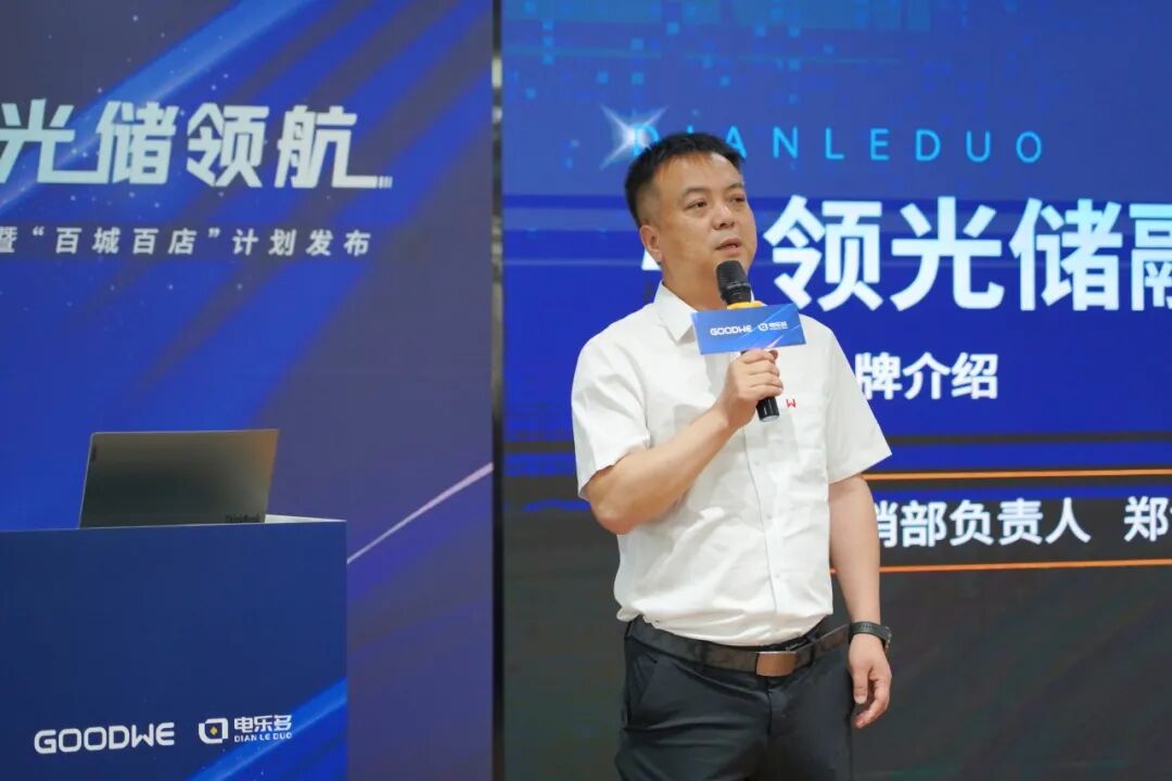 在全场来宾的见证下,电乐多“百城百店”计划正式发布,固德威电源科技(广德)有限公司总经理张文兵、电乐多副总经理毛银华、电乐多工商事业部齐伟等共同见证发布,电乐多工商业事业部负责人齐伟向大家隆重介绍了电乐多工商业的业务模式与合作政策。